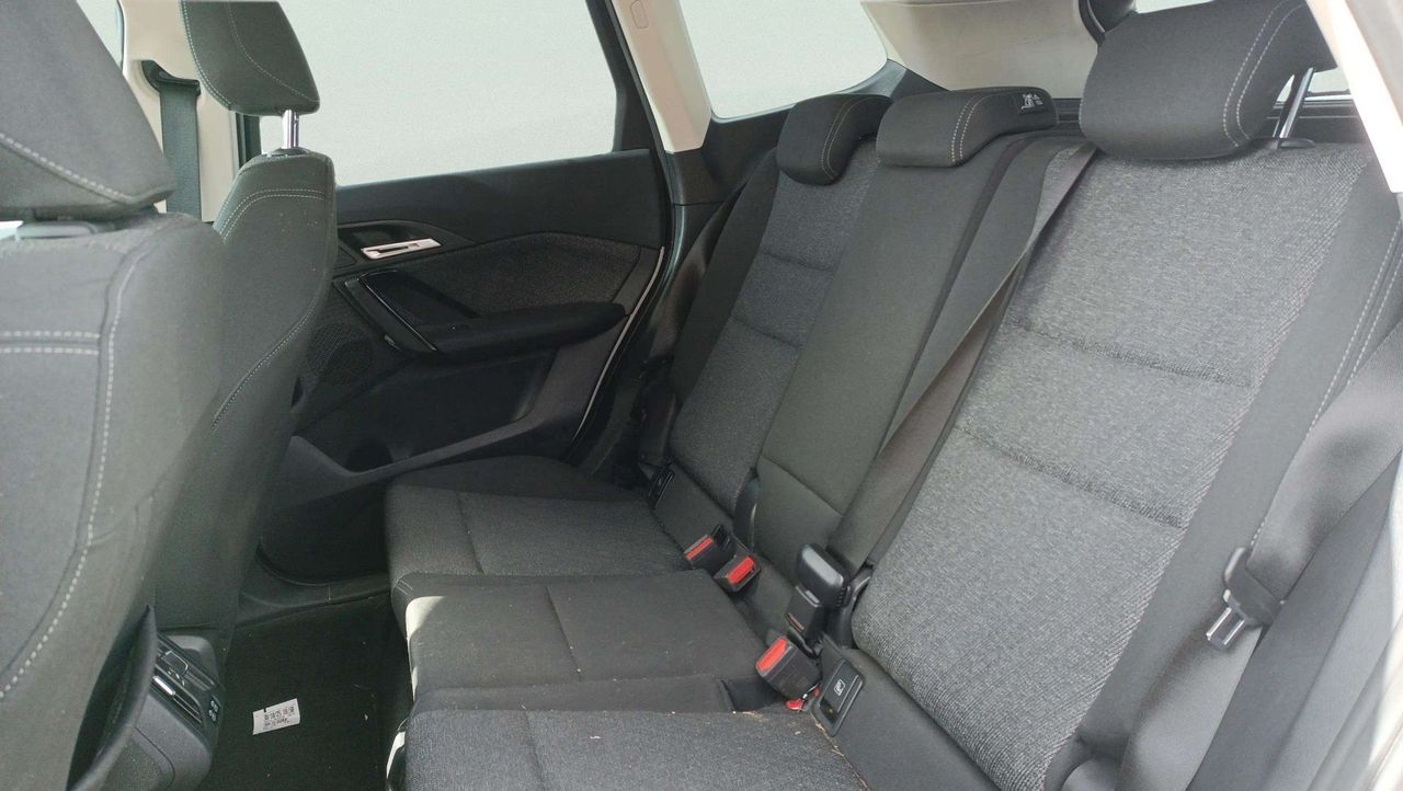 - Asientos traseros de tres plazas de tipo banco de orientación delantera con banqueta fija, respaldo abatible 40/20/40 y ajuste manual del respaldo